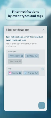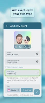"My Dates" on loodud oluliste sündmuste kuupäevade mugavaks salvestamiseks ja meelespidamiseks. See aitab teil hoida kõik tähtsad daatumid ühes kohas korras, tagades, et te ei unusta enam kunagi sünnipäevi, tähtpäevi ega muid olulisi momente.