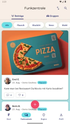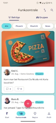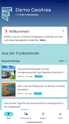 Läbi **StadtLand.Funk** rakenduse saad hõlpsasti suhelda naabrite, kohalike ühenduste ja piirkondlike algatustega, luues tugevama võrgustiku just seal, kus sa elad. Ole alati kursis viimaste regionaalsete uudiste, teenuspakkumiste ja põnevate sündmustega, mis puudutavad otseselt sind ja sinu kogukonda. Liitu huvipakkuvate teemagruppidega või oma piirkonna spetsiifilise grupiga, et osaleda aruteludes, jagada infot ja leida mõttekaaslasi. Rakenduse intuitiivne sündmuste kalender tagab, et sa ei jää kunagi ilma kohalikest festivalidest, töötubadest või tegevustest, aidates sul aktiivselt planeerida ja panustada.